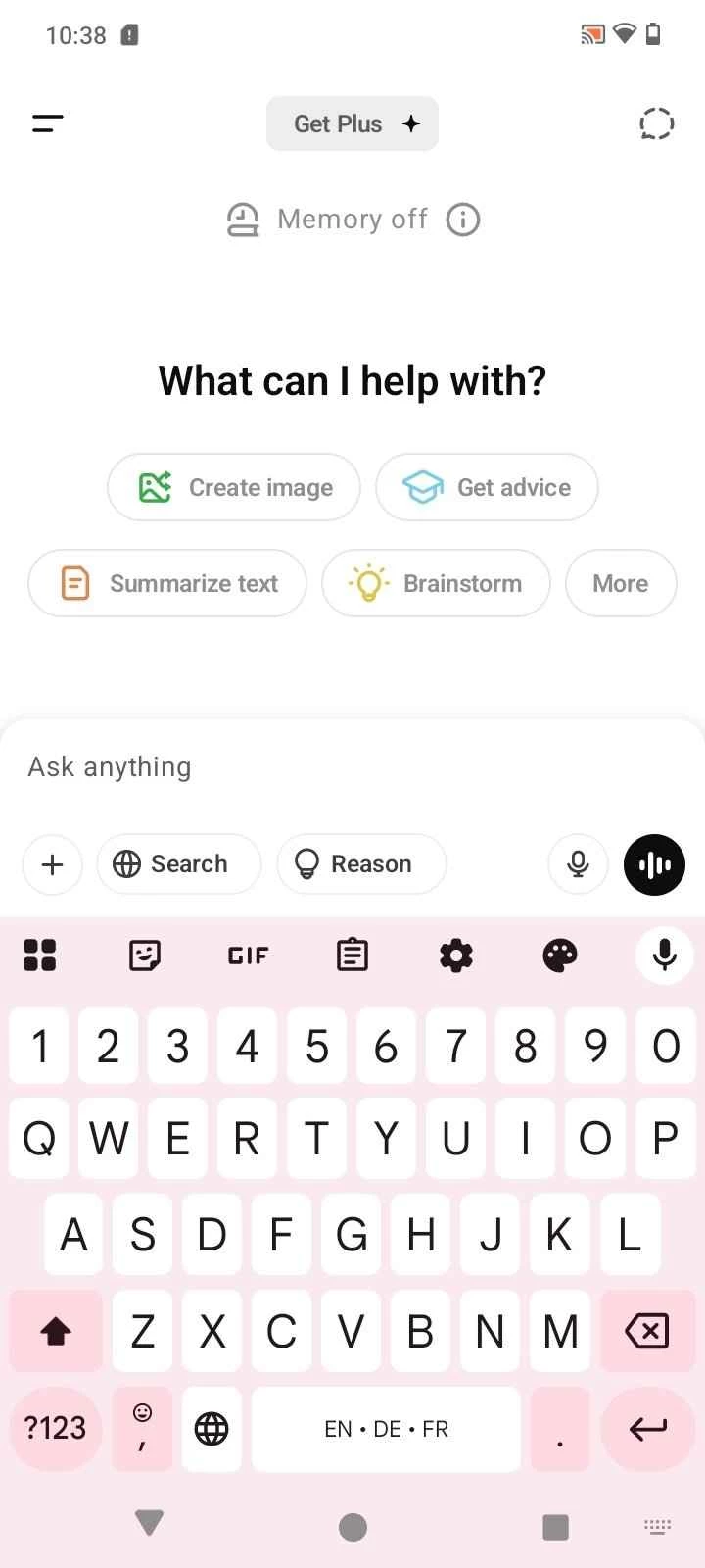 Puedes descargar e instalar ChatGPT desde el sitio web oficial, Google Play Store o simplemente haciendo clic en el botón "Descargar" de la página. Abre la aplicación haciendo clic en el icono que aparece en la pantalla de inicio e inicia sesión con tu cuenta de Google o crea una nueva. Accederás a la pantalla principal con un cuadro de texto en el centro. Aquí tienes tres maneras de introducir tus consultas: